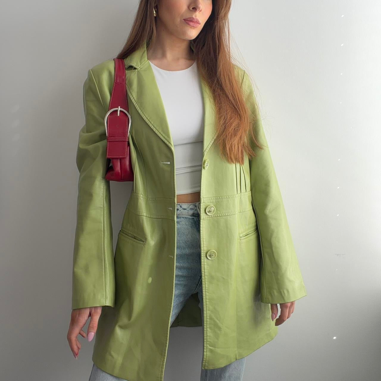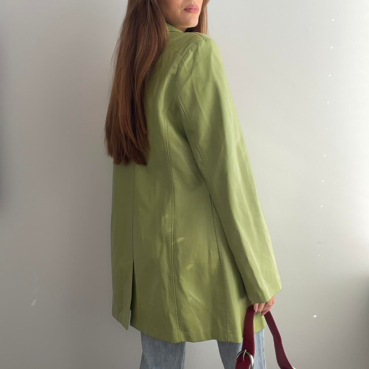 Pistachio green faux leather vegan leather blazer jacket