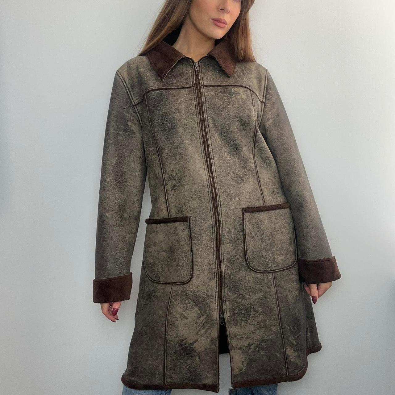 Khaki green and brown sheepskin style faux fur coat
