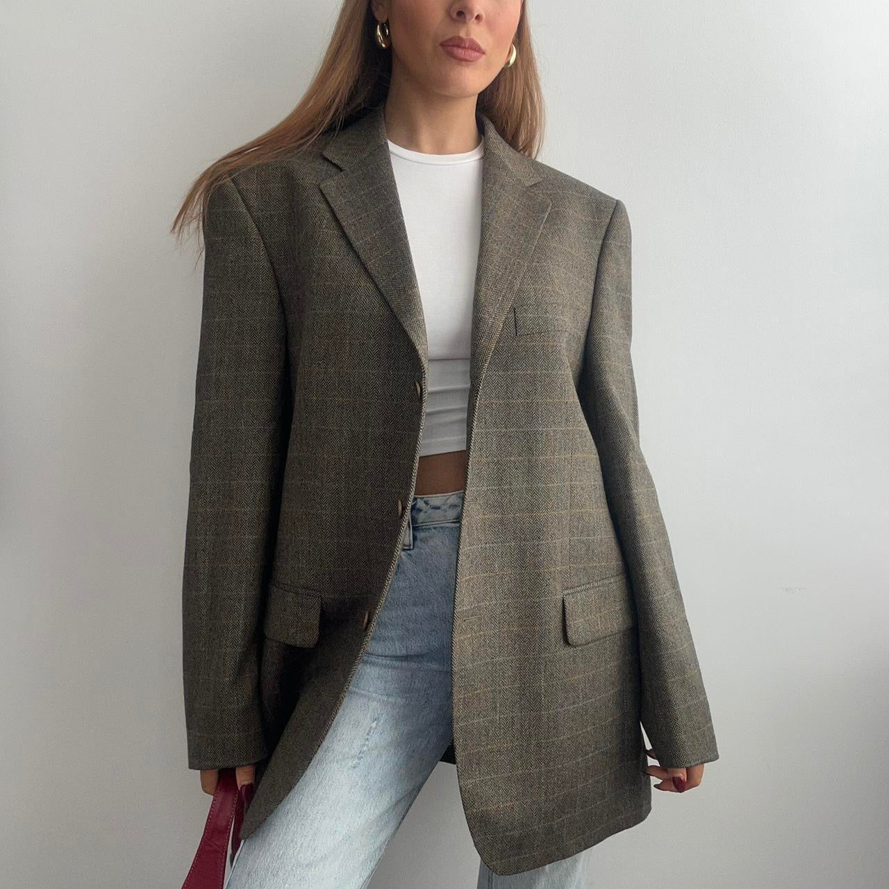 Khaki green herringbone blazer jacket men’s size 40R / unisex