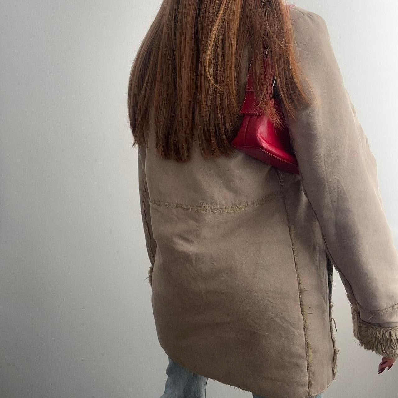 Light brown faux fur and faux suede coat with a boho vibe - button up design